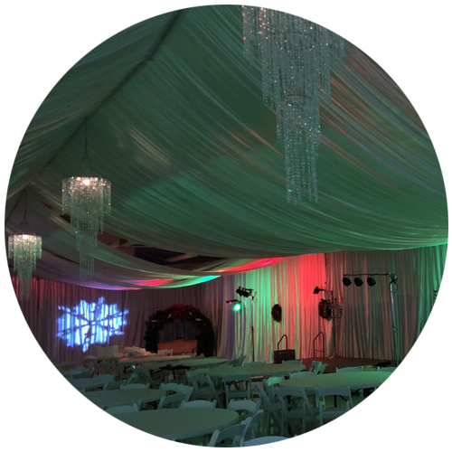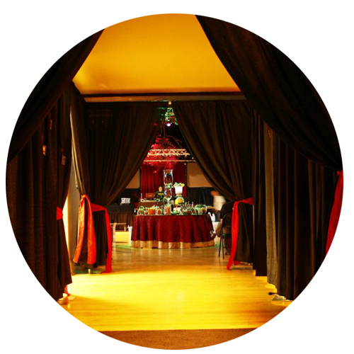 We specialize in transforming industrial halls, gyms, barns, park gazebos, tents, and church halls into warm, magical environments.